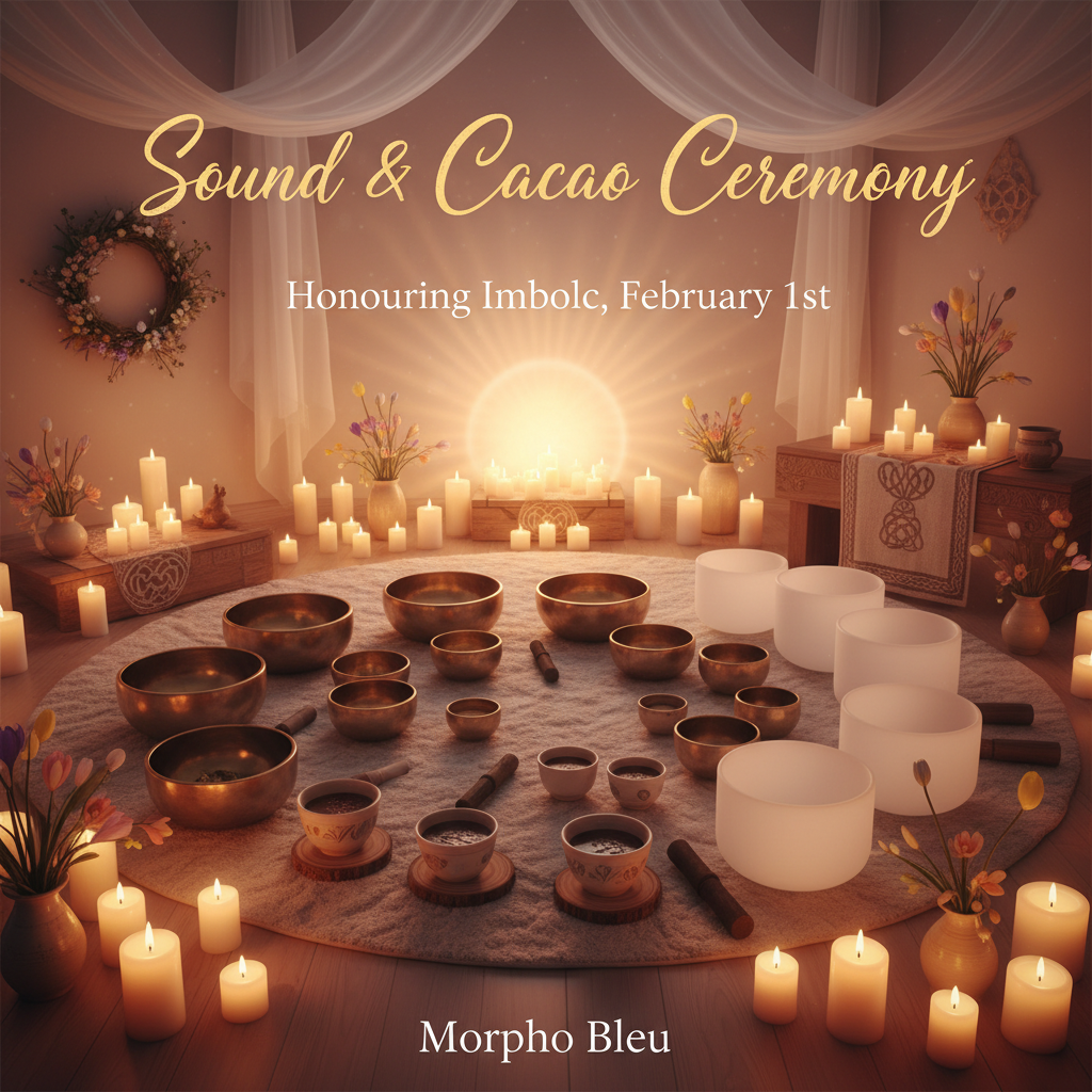 This Imbolc gathering invites us to honour our inner flame, nurture our bodies and spirits, and set intentions for the coming spring. In this sacred space, we'll open with a sharing circle, journey through a heart-opening cacao ceremony, and surrender into a restorative sound journey with crystal singing bowls. We'll release what no longer serves us, invite new beginnings, and close with silent integration circle to ground our experience.