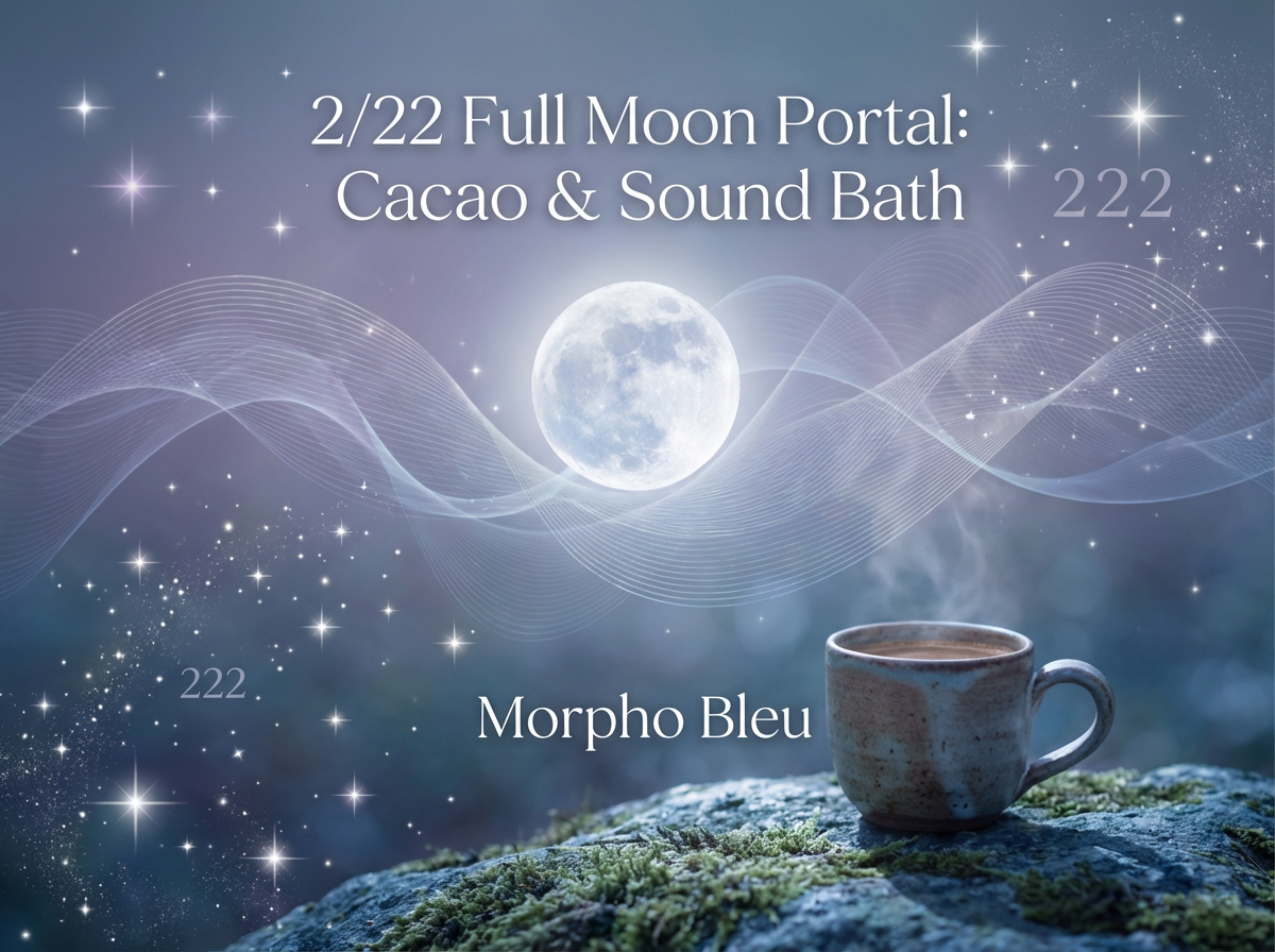 Join Sarah of The Resonance Temple for a heart-opening evening of ritual, sound, and community at Morpho Bleu. This special gathering blends sacred cacao, immersive sound healing, and intentional ceremony to help you release, renew, and align with your highest self.